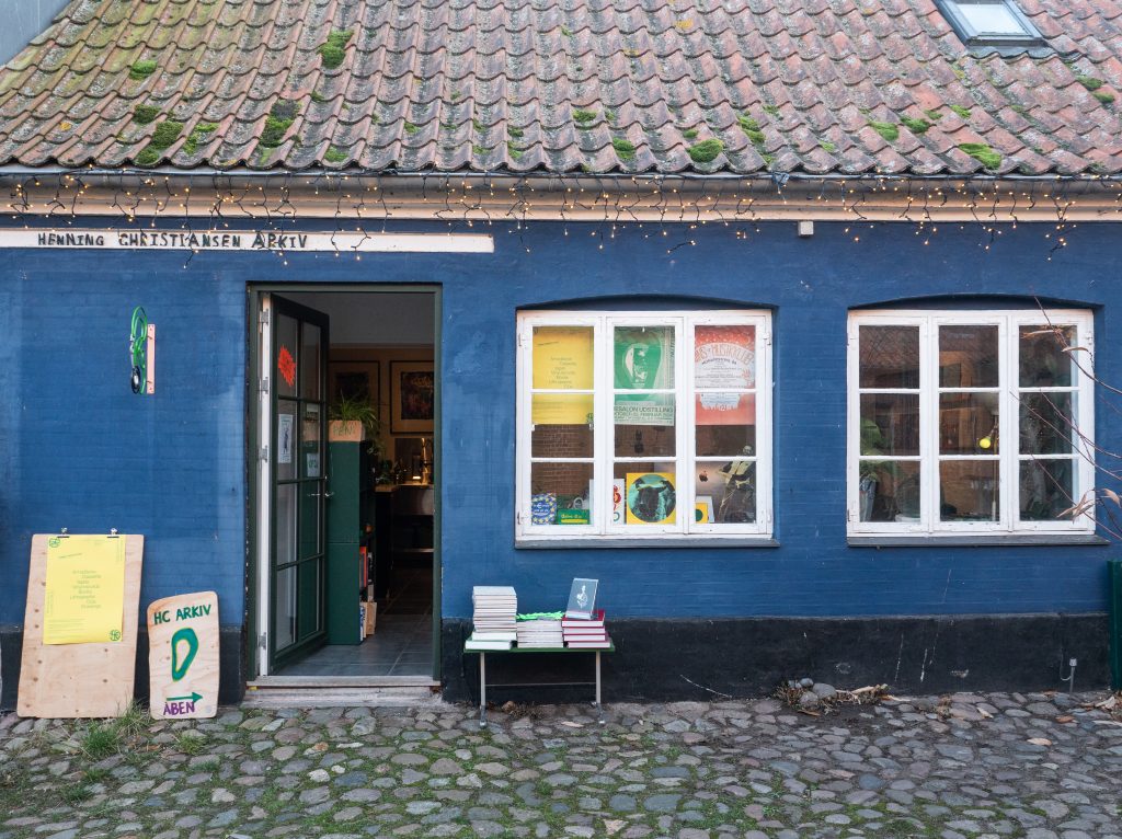 Henning Christiansen Arkiv er placeret i Luffes Gård i Stege på Møn. Her kommer lokale og turister løbende ind og ud af arkivet.