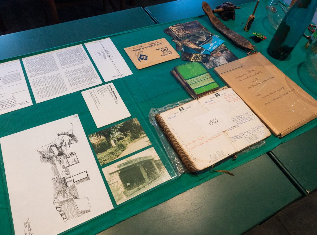 This led to a three-day, 7-hour long performance in the Cell Block Theater during the Sydney Biennale with Ken, Henning and Bjørn Nørgaard, where Stenen was at the center. Here, Henning played on green-painted stones, which symbolize a tribute to the freely rolling stones. The exhibition shows works of and about stone from the period 1989-1992, a period that consisted of hope after the fall of the Berlin Wall and the dissolution of the Soviet Union. During that period, Henning was also in New York where, as he says, there was a green man walking around on stones. The exhibition is Henning Christiansen’s archive’s summer exhibition.